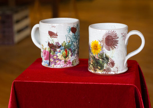 Justin is a potter from Indiana. Justin uses multiple firing methods as desired, including wood fire, a time and resource-intensive firing method. Most of Justin’s pottery is adorned with decals. A piece may be fired several times to achieve a layered, collaged look with wildlife, florals, and public figures like presidents.