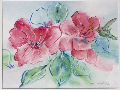 Maureen Reed’s watercolor compositions are inspired by the vegetation in Michigan. Reed’s paintings are soft, almost misty. She uses a spraying technique with her pigments that resemble the soft edges of spray paint. lives and works in Calhoun-County, Michigan where she can be close to her family and be inspired by the ever-changing natural landscape.